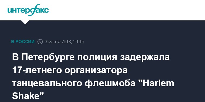В Петербурге полиция задержала 17-летнего организатора танцевального флешмоба "Harlem Shake"