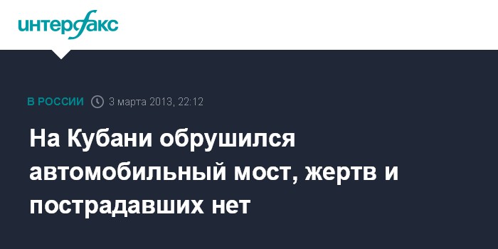Ростов-на-Дону. 3 марта. ИНТЕРФАКС-ЮГ - Автомобильный мост через реку Пшиш обрушился в Апшеронском районе Краснодарского края, сообщили в воскресенье агентству "Интерфакс-Юг" в пресс-службе Южного регионального центра МЧС РФ.