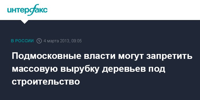 Москва. 4 марта. INTERFAX.RU - Необходимо запретить массовую вырубку зеленых насаждений в местах нового строительства, независимо от назначения строящихся объектов, заявил в рамках IV съезда Совета муниципальных образований Московской области заместитель председателя правительства региона Герман Елянюшкин.