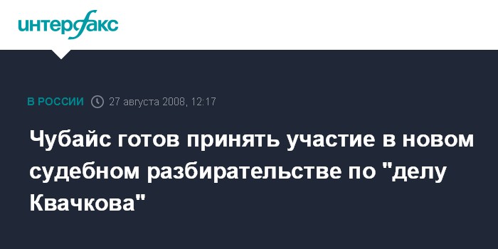 Чубайс готов принять участие в новом судебном разбирательстве по "делу Квачкова"