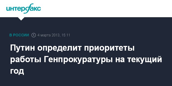 Путин определит приоритеты работы Генпрокуратуры на текущий год