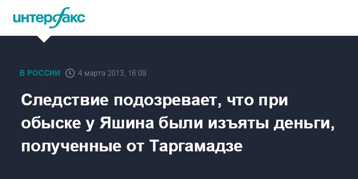 Следствие подозревает, что при обыске у Яшина были изъяты деньги, полученные от Таргамадзе