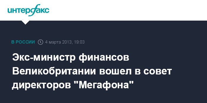 Экс-министр финансов Великобритании вошел в совет директоров "Мегафона"