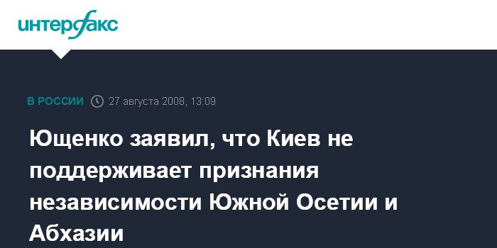 Москва. 27 августа. INTERFAX.RU - Президент Украины Виктор Ющенко заявил о неприемлемости для Киева признания Россией независимости Абхазии и Южной Осетии.