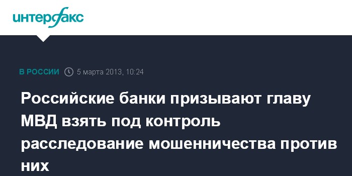 Российские банки призывают главу МВД взять под контроль расследование мошенничества против них