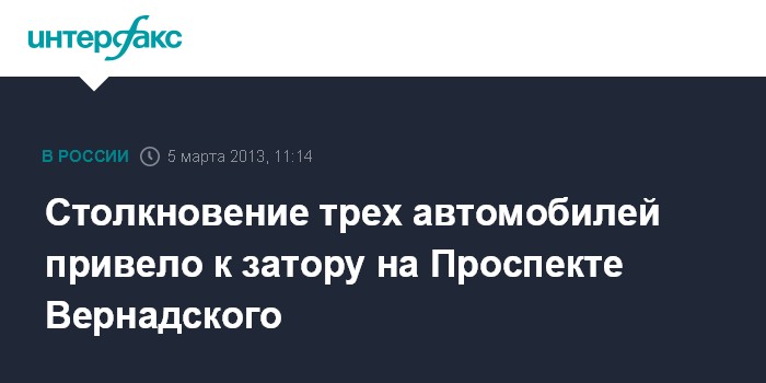 Столкновение трех автомобилей привело к затору на Проспекте Вернадского