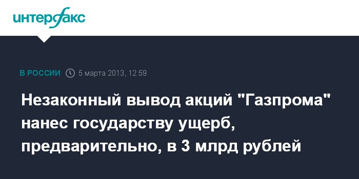 Незаконный вывод акций "Газпрома" нанес государству ущерб, предварительно, в 3 млрд рублей