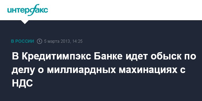 "Главным следственным управлением СКР в ходе расследования уголовного дела о хищении в особо крупном размере из бюджета РФ денежных средств путем незаконного возмещения налога на добавленную стоимость (НДС) в сумме более 8 млрд рублей, установлена причастность работников Кредитимпэкс Банка к легализации похищенных денежных средств путем оказания содействия в их выводе за пределы России", - отметил Маркин.