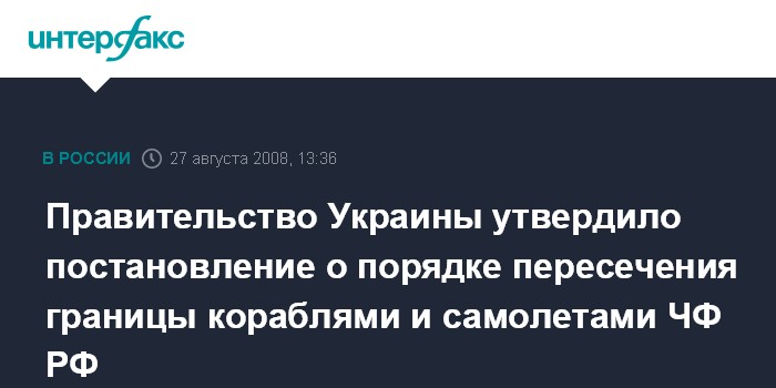 Москва. 27 августа. INTERFAX.RU - Правительство Украины утвердило постановление о порядке пересечения государственной границы военнослужащими, кораблями и летательными аппаратами Черноморского флота РФ, сообщил журналистам в кулуарах Кабмина в среду первый заместитель главы секретариата президента, представитель главы государства в кабинете министров Александр Шлапак.