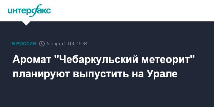 Челябинск. 5 марта. iNTERFAX.RU - Предприниматель Сергей Андреев из города Чебаркуль Челябинской области решил выпустить аромат "Запах "Чебаркульского метеорита", сообщается на сайте администрации города.