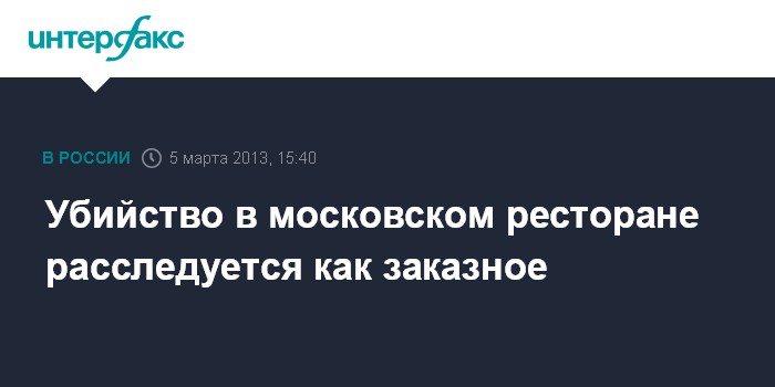 Москва. 5 марта. INTERFAX.RU - Следственные органы возбудили уголовное дело в связи с убийством мужчины в ресторане "Закарпатские узоры" в центре Москвы, которое, по данным следствия, было заказным.