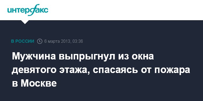 Москва. 6 марта. ИНТЕРФАКС - Мужчина выпрыгнул с девятого этажа, спасаясь от пожара на юго-востоке Москвы, и остался жив, сообщили "Интерфаксу" источник в правоохранительных органах.