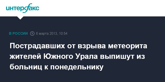 Пострадавших от взрыва метеорита жителей Южного Урала выпишут из больниц к понедельнику