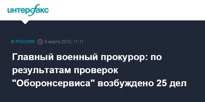 Москва. 6 марта. INTERFAX.RU - По так называемому "большому" делу "Оборонсервиса" возбуждено и расследуется 25 уголовных дел, сообщил главный военный прокурор Сергей Фридинский.