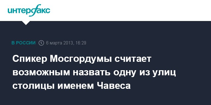 Спикер Мосгордумы считает возможным назвать одну из улиц столицы именем Чавеса