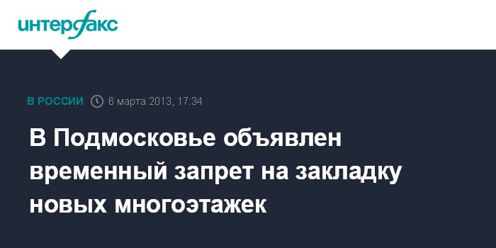 В Подмосковье объявлен временный запрет на закладку новых многоэтажек