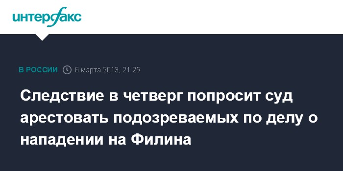 Следствие в четверг попросит суд арестовать подозреваемых по делу о нападении на Филина