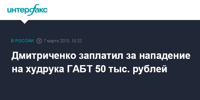 Дмитриченко заплатил за нападение на худрука ГАБТ 50 тыс. рублей