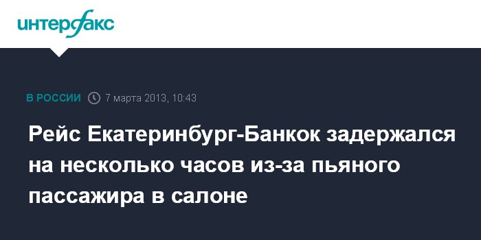 Екатеринбург. 7 марта. INTERFAX.RU - В аэропорту Кольцово в Екатеринбурге в среду полиция сняла с рейса пьяного пассажира рейса Екатеринбург-Банкок авиакомпании "Трансаэро", сообщили агентству "Интерфакс-Урал" в пресс-службе управления на транспорте МВД РФ по УрФО.