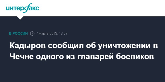 Кадыров сообщил об уничтожении в Чечне одного из главарей боевиков