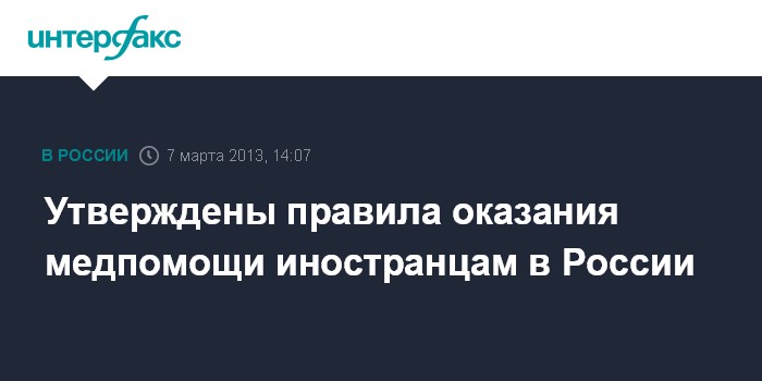 Москва. 7 марта. INTERFAX.RU - Правительство России утвердило правила оказания, в том числе бесплатной, медицинской помощи иностранным гражданам на территории России.