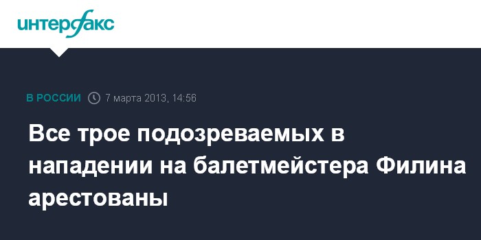 Все трое подозреваемых в нападении на балетмейстера Филина арестованы