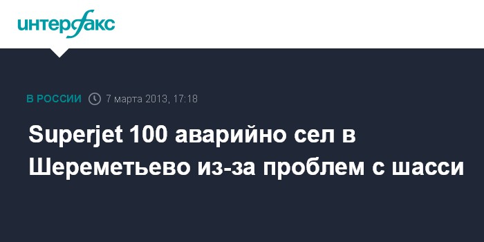 По данным ведомства, примерно в 16:50 Superjet 100, выполнявший рейс Москва - Нижний Новгород, совершил аварийную посадку в Шереметьево из-за того, что у него не закрылась стойка шасси.