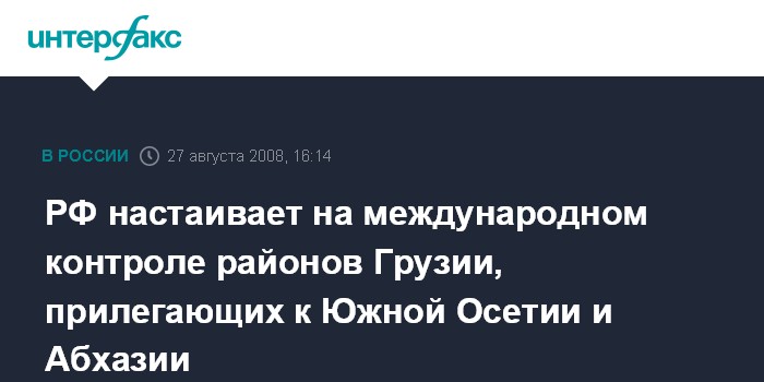 РФ настаивает на международном контроле районов Грузии, прилегающих к Южной Осетии и Абхазии