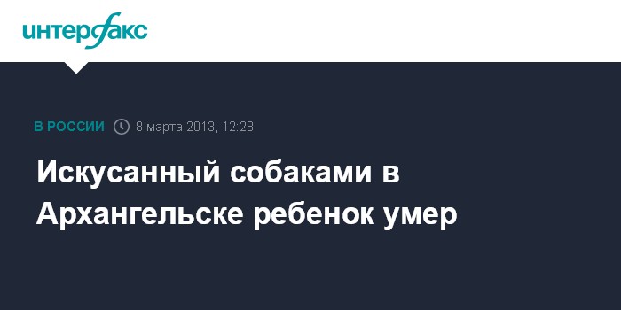 Архангельск. 8 марта. INTERFAX.RU - Ребенок, на которого напала стая собак в Архангельске, скончался в больнице, сообщили "Интерфаксу" в пресс-службе УМВД по Архангельской области. "Установлены родители погибшего мальчика. С их слов ребенку было 8 лет. По факту инцидента проводится проверка, решается вопрос о возбуждении уголовного дела ", - сказал собеседник агентства.