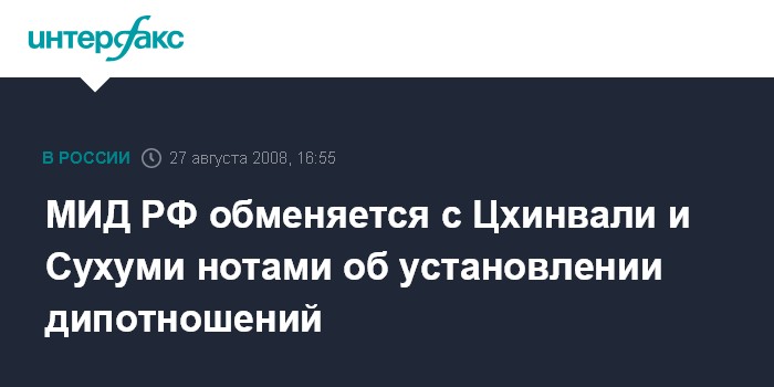 МИД РФ обменяется с Цхинвали и Сухуми нотами об установлении дипотношений
