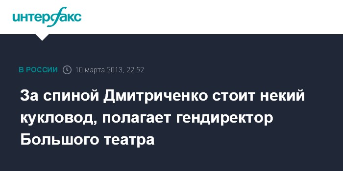 За спиной Дмитриченко стоит некий кукловод, полагает гендиректор Большого театра