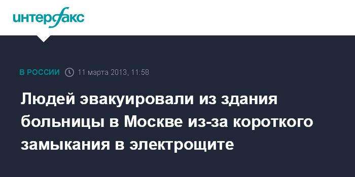 Людей эвакуировали из здания больницы в Москве из-за короткого замыкания в электрощите