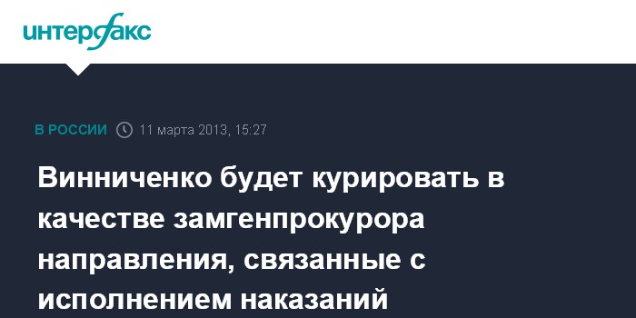Москва. 11 марта. INTERFAX.RU - Николай Винниченко, кандидатура которого предложена на пост заместителя генпрокурора России, будет курировать ряд направлений, включая соблюдение законности в исправительных учреждениях и работу по рассмотрению обращений граждан, сообщила "Интерфаксу" официальный представитель ведомства Марина Гриднева.