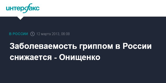 Москва. 12 марта. ИНТЕРФАКС - Заболеваемость гриппом и ОРВИ в России значительно снизилась, заявил глава Роспотребнадзора главный государственный санитарный врач Геннадий Онищенко.