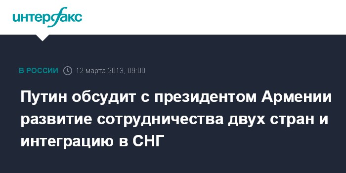 Путин обсудит с президентом Армении развитие сотрудничества двух стран и интеграцию в СНГ