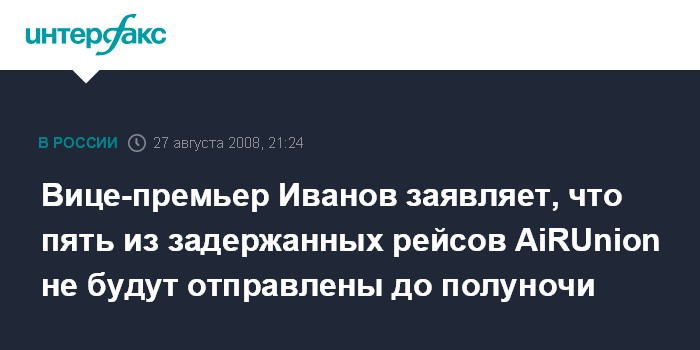 Вице-премьер Иванов заявляет, что пять из задержанных рейсов AiRUnion не будут отправлены до полуночи