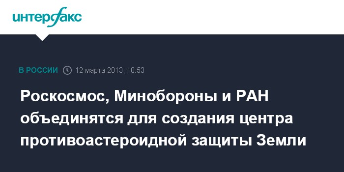 Москва. 12 марта. INTERFAX.RU - Роскосмос, Минобороны и Российская академия наук объединяют усилия для создания единого центра по предупреждению и парированию космических угроз, сообщил в ходе "круглого стола" в Совете Федерации глава Роскосмоса Владимир Поповкин, выступая на "круглом столе" по вопросам астероидно-кометной опасности.