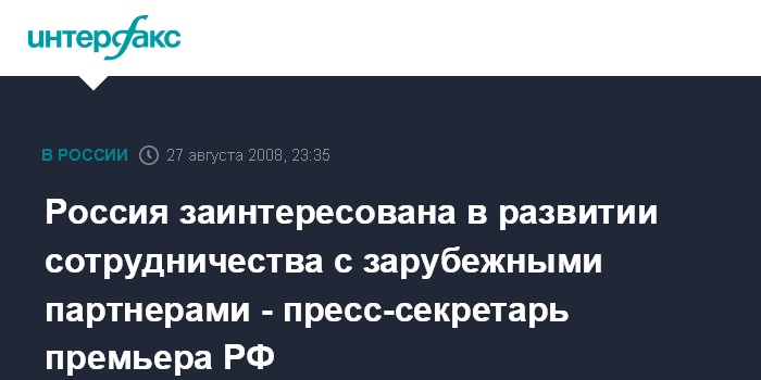Россия заинтересована в развитии сотрудничества с зарубежными партнерами - пресс-секретарь премьера РФ