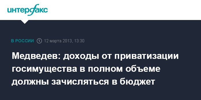 Медведев: доходы от приватизации госимущества в полном объеме должны зачисляться в бюджет