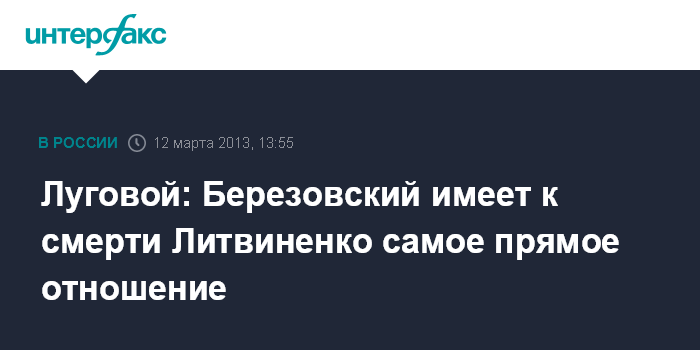 Москва. 12 марта. INTERFAX.RU - Депутат Госдумы Андрей Луговой настаивает на том, что опальный олигарх Борис Березовский имеет отношение к гибели бывшего сотрудника российских спецслужб Александра Литвиненко.