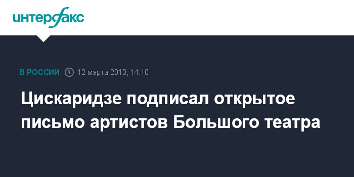 Как сообщил "Интерфаксу" Цискаридзе, письмо было написано артистами театра 4 дня назад. "Я подписал это письмо, так же как и многие работники театра", - отметил артист.