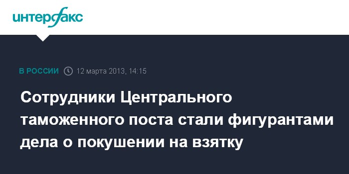 Москва. 12 марта. INTERFAX.RU - В отношении заместителя начальника тыловой службы Центрального таможенного управления (ЦТО) ФТС РФ Сергея Вострикова и начальника финансово-бухгалтерской службы Татьяны Игнатовой возбуждено уголовное дело о покушении на дачу взятки в особо крупном размере, сообщил "Интерфаксу" официальный представитель Следственного комитета РФ Владимир Маркин.