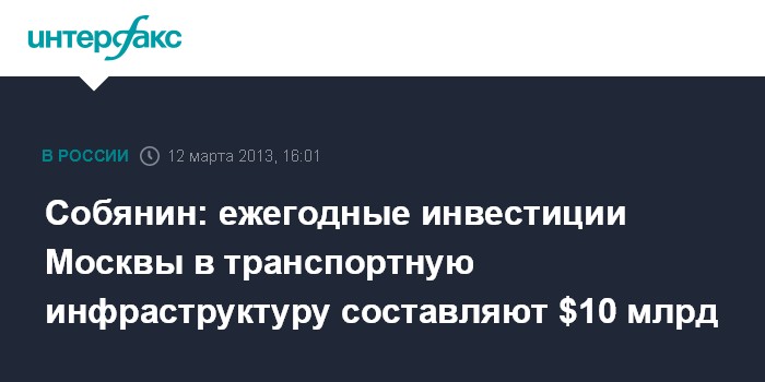 Собянин: ежегодные инвестиции Москвы в транспортную инфраструктуру составляют $10 млрд