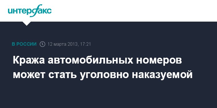 Москва. 12 марта. INTERFAX.RU - Законодательное собрание Санкт-Петербурга внесло в Госдуму законопроект, устанавливающий уголовную ответственность за похищение государственного регистрационного знака транспортного средства.