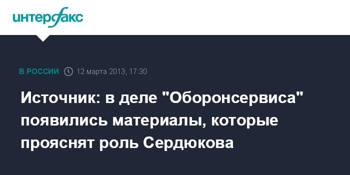 Москва. 12 марта. INTERFAX.RU - В громком деле "Оборонсервиса", в котором в качестве свидетеля фигурирует экс-министр обороны Анатолий Сердюков, в ближайшее время может наметиться серьезный поворот, сообщил во вторник "Интерфаксу" источник, знакомый с ситуацией.