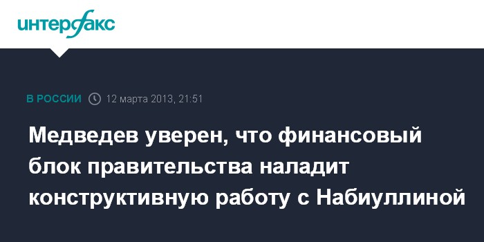 Медведев уверен, что финансовый блок правительства наладит конструктивную работу с Набиуллиной