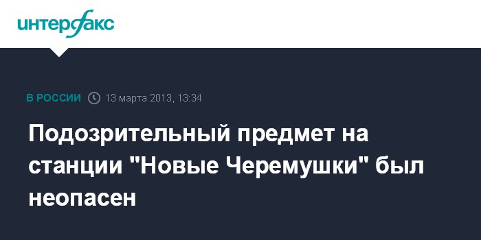Москва. 13 марта. INTERFAX.RU - Подозрительный предмет, обнаруженный в среду днем на платформе станции метро "Новые Черемушки", не несет никакой угрозы, сообщили "Интерфаксу" в пресс-службе ГУ МВД России по Москве.