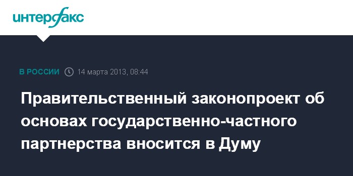 Правительственный законопроект об основах государственно-частного партнерства вносится в Думу