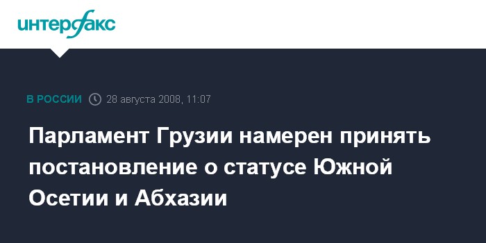 Москва. 28 августа. INTERFAX.RU - Парламент Грузии в четверг, 28 августа, на чрезвычайном заседании намерен принять постановление "об оккупированных Россией грузинских территориях".