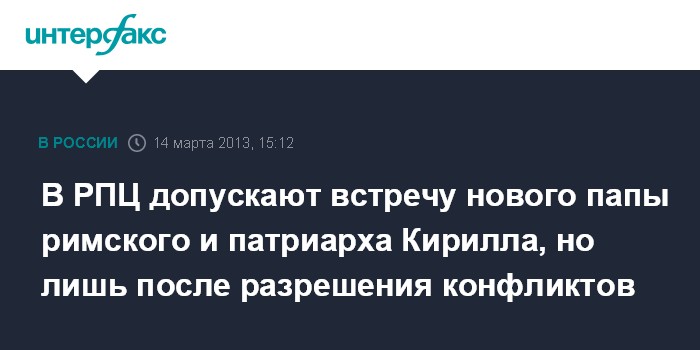 Москва. 14 марта. INTERFAX.RU - Возможность встречи папы Римского и патриарха Московского и всея Руси не исключена, но сначала нужно преодолеть противоречия между двумя церквями, подчеркивают в Московском патриархате.